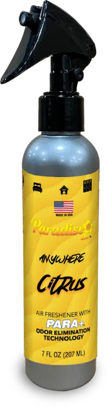 Ambientador Paradise Air Fresh en spray con aroma Citrus, fresco y cítrico. Neutraliza olores de forma inmediata y permite una aplicación controlada. Perfecto para refrescar coche y espacios cerrados.